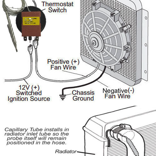 Simply inserts into the top hose. Set desired temp on dial between 0-120 Degrees. Universal.
