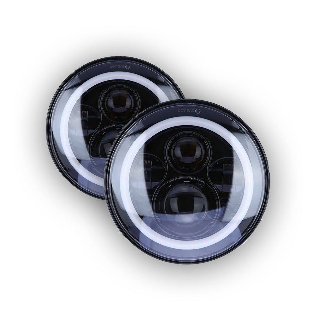 Plug and play, direct replacement for 7" round headlamps H4 connection. Also includes H4 to H13 adaptor to suit various applications. Optional built in indicator, the halo will flash amber. Popular for Land Rover Defender, Mg, Mini, Triumph and Jeep.